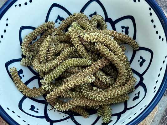 Zurück im Kräutercafé, stellen wir karamellisierte Haselkätzchen her, die wir auf Joghurt genießen. Scharbockskraut machen wir haltbar für den späteren Gebrauch.